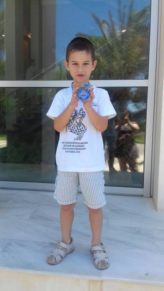 Es francamente complicado tener jugadores fuertes en esta categoría que puedan hacer frente a una competición tan dura como esta, sin embargo Enrique sorprendió con un estupendo arranque de competición situándose en las primeras mesas, y pudimos disfrutar de todas sus partidas que fueron retransmitidas en directo, menudos nervios!! Comenzó ganando las tres primeras rondas. No se amilanó cuando en el ecuador de la competición perdió dos rondas seguidas, sacó esa garra de campeón y el último día remató ganando las 2 últimas rondas. Finalizó con 6 puntos en el puesto 21º de la clasificación y 4º Sub07, un estupendo broche para finalizar lo que ha sido una gran temporada en la que con su peculiar estilo de juego ha logrado grandes resultados sin perder nunca ese entusiasmo y alegría que desprenden los más pequeños, enhorabuena Enrique!!